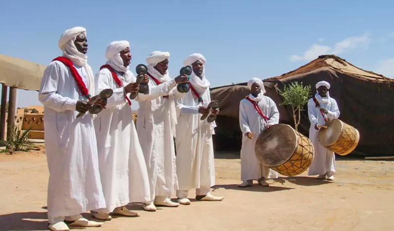 Posteriormente, nos detendremos en el poblado de Khamlia para que podáis visitarlo por vuestra cuenta y después tomaremos rumbo de regreso a Merzouga al atardecer.